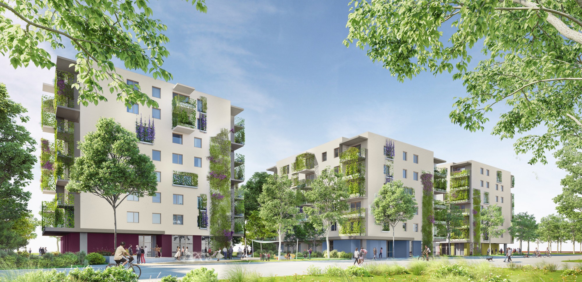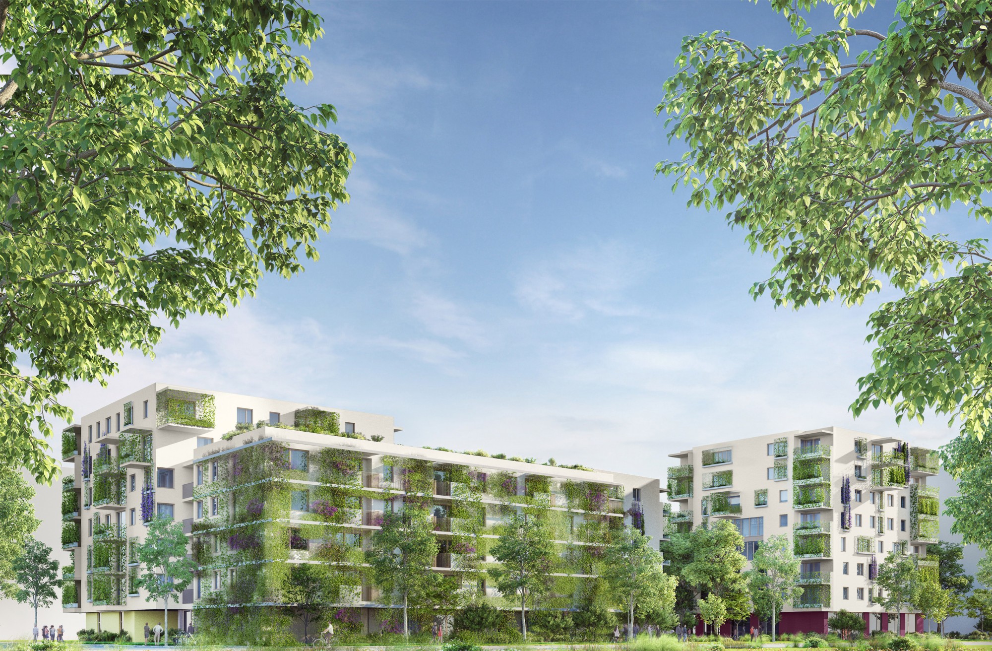 Der wichtigste, namensgebende Bestandteil unseres Projektes ist die geschichtete Konstruktion der Gebäude aus Cleancrete (zementfreier, betonähnlicher Baustoff für Wände u. Estriche, für den Löss u. Ton vom eigenen Baugrund verwendet wird) und RCC (Beton mit reduziertem Zementanteil) mit der wir, von der TU berechnet, 53% des CO2 Anteiles des gesamten Rohbaus der Wohngebäude reduzieren können. Im Sinne der Kreislaufwirtschaft werden wir von ca. 30.000 t Aushub voraussichtlich 60% als Füllmaterial, Circular Soil und für Cleancrete wiederverwerten und auf nachwachsende Rohstoffe bei der Dämmung setzen. Klimagärtnern mit Terra Preta hilft CO2 zu binden und gibt die Kreislaufwirtschaft auch in die Hände der Baugruppen und Bewohner. Der Rückbaubarkeit und dem Gedanken des ReUse wird durch die Wiederverwendung von Fassadenelementen des Gebäudes der Pensionsversicherungsanstalt PVA, das einer Generalsanierung unterzogen wird, Rechnung getragen.